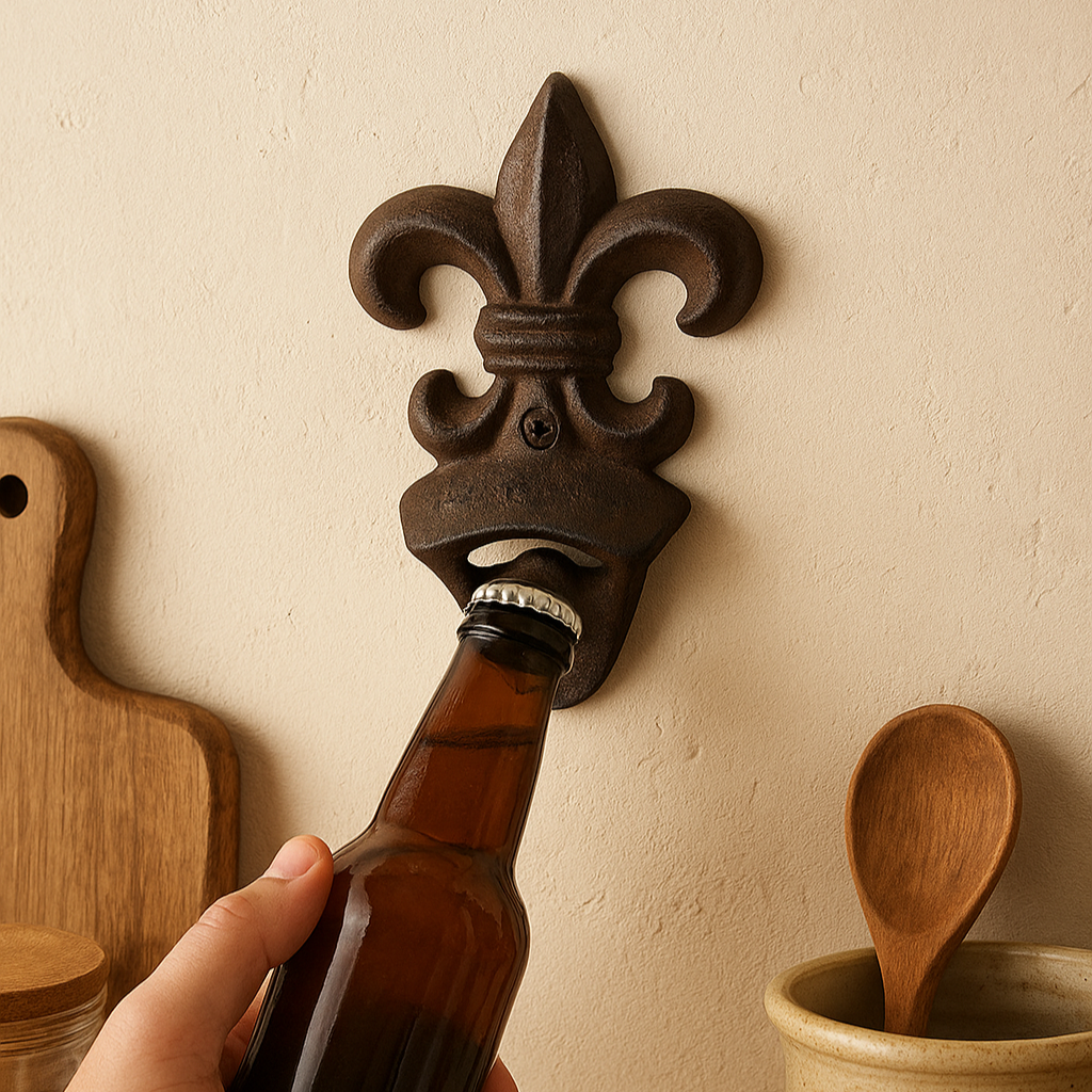Traditional Style Fleur De Lis Pattern Cast Iron Bottle Opener